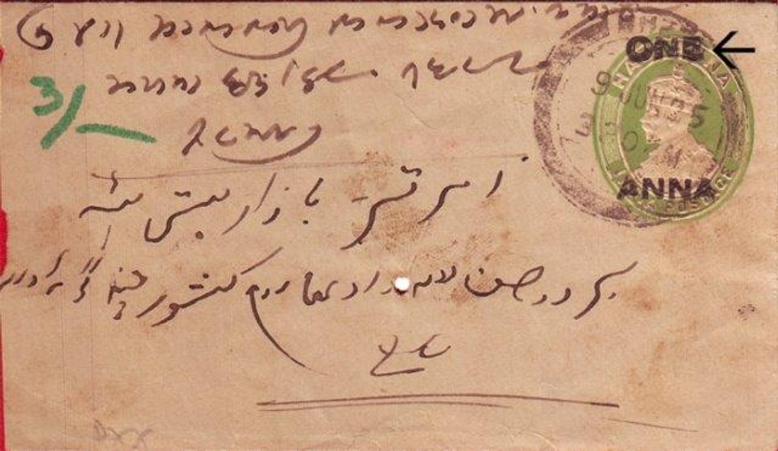 Postal Cover of 1 Anna Ovpt on 1 Anna 3 Pies of King Ge ...