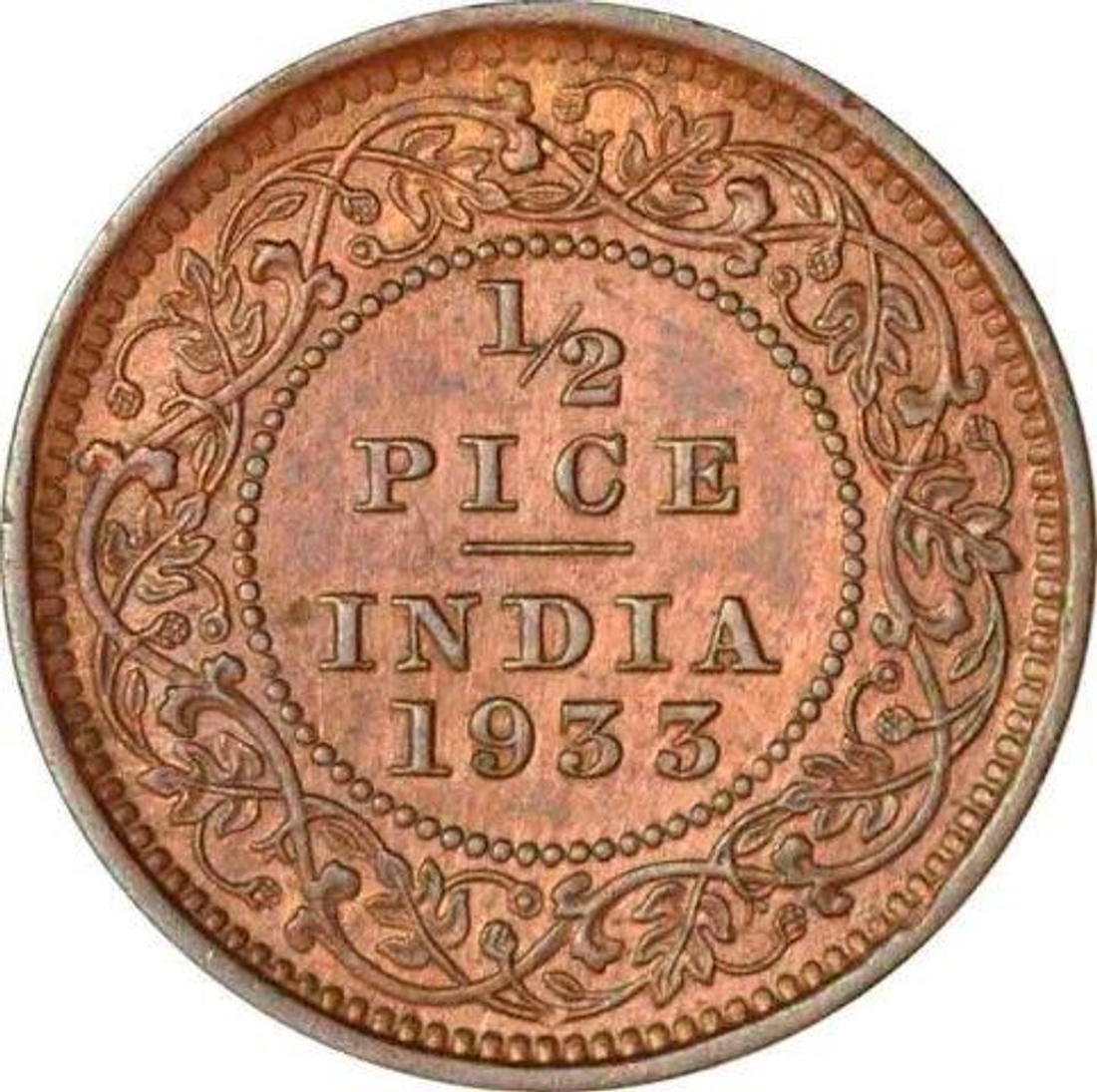 Bronze Half Pice of King George V of Calcutta Mint of 1926.