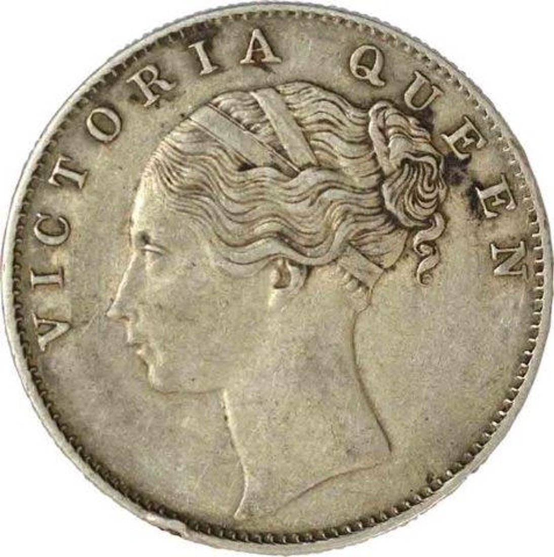 Silver One Rupee Coin of Victoria Queen of Bombay Min ...