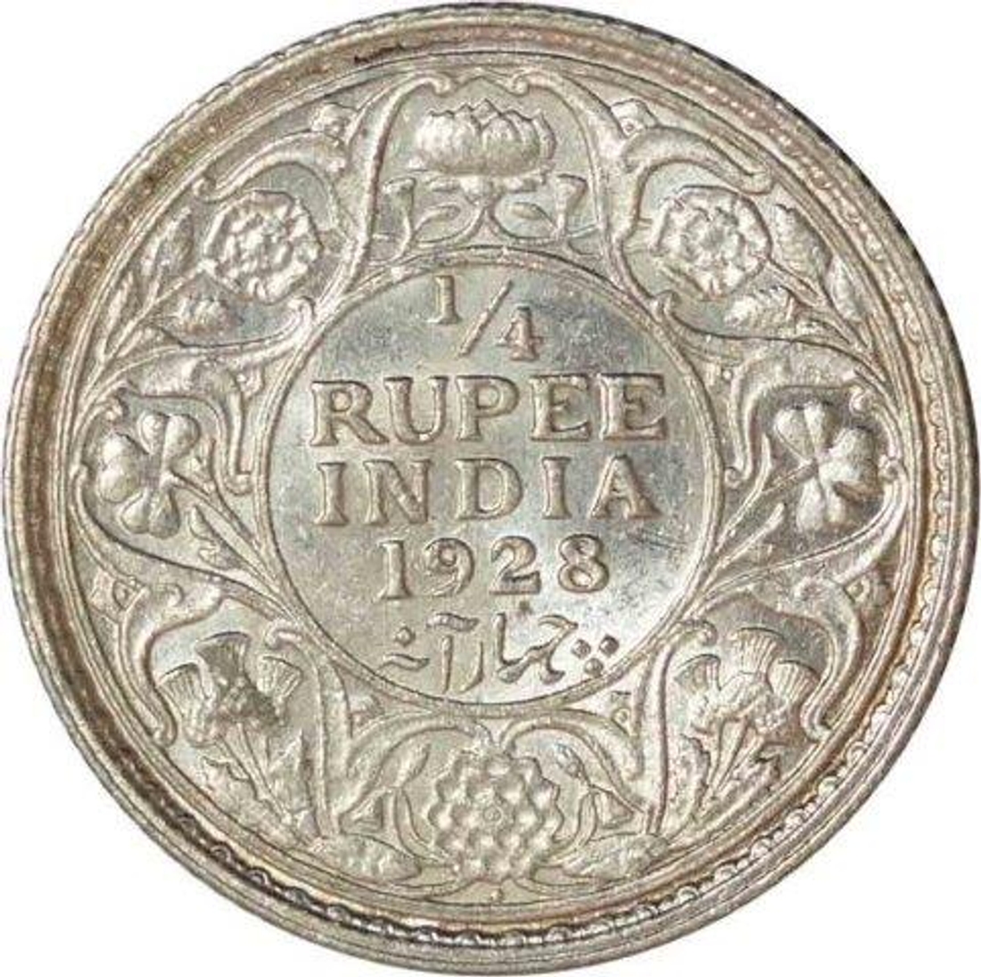 Silver One Quarter Rupee Coin of King George V of Calcu ...