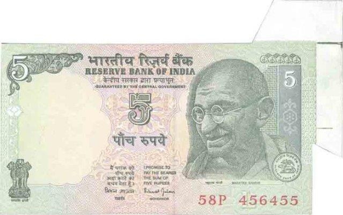 Error Five Rupees Bank Note of Republic India.