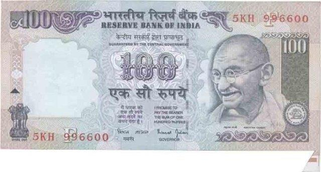 Extra Paper Error One Hundred Rupees Banknote Signed by ...
