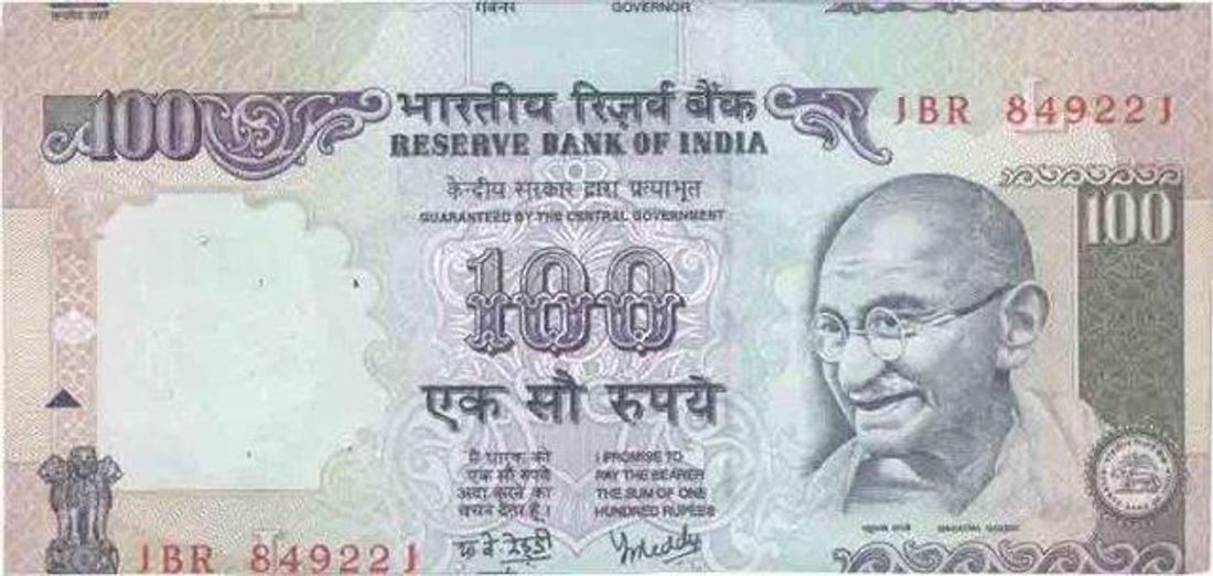 Obverse Printing Error One Hundred Rupees Banknote of R ...