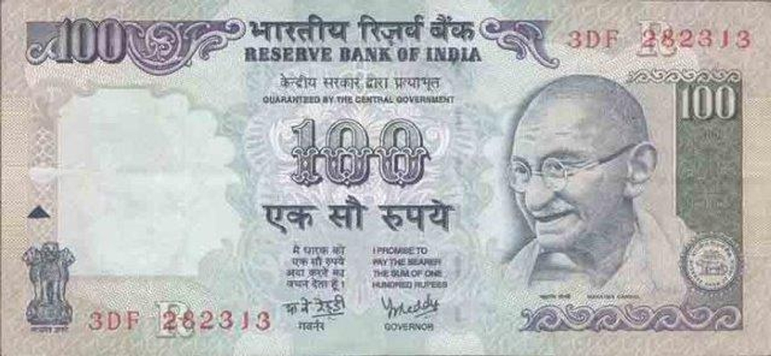 Error One Hundred Rupees Bank Note of Republic India.