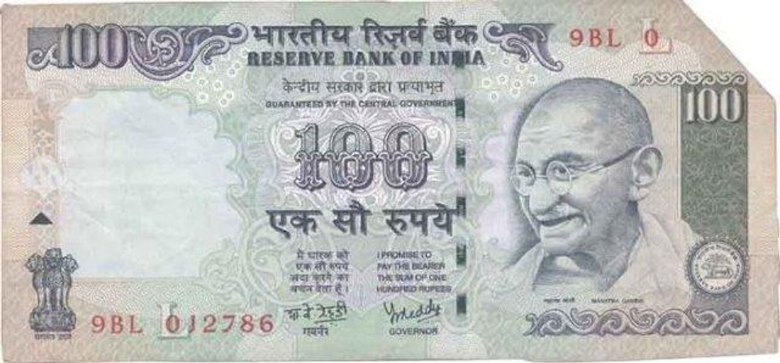 Offset Printing Error One Hundred Rupees Banknote Signe ...