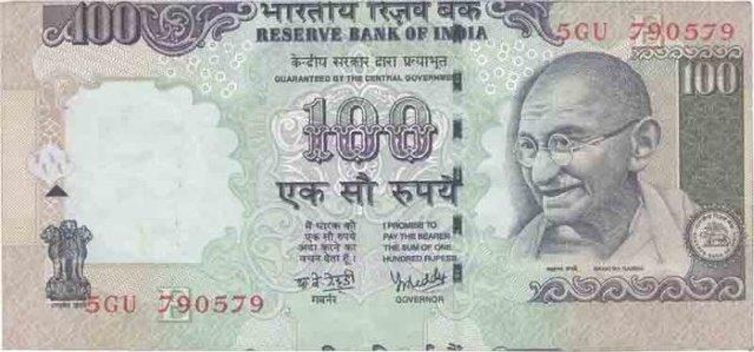 Extra Paper & Cutting Error One Hundred Rupees Banknote ...