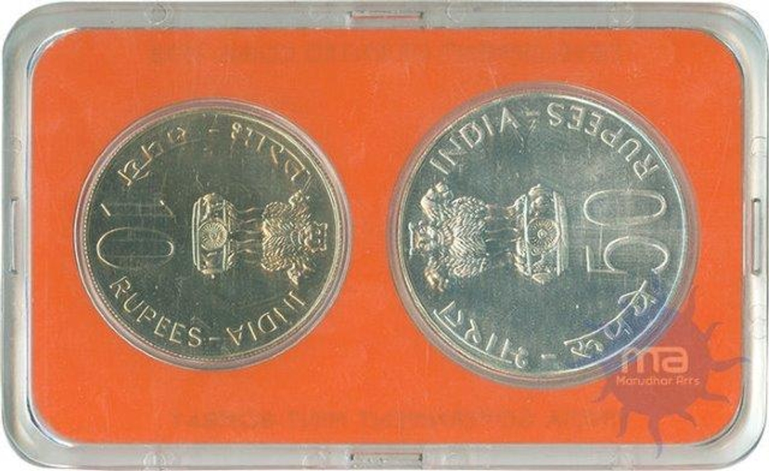 Proof Set of Two Coins of 10 Rupees and 50 Rupees of Bo ...