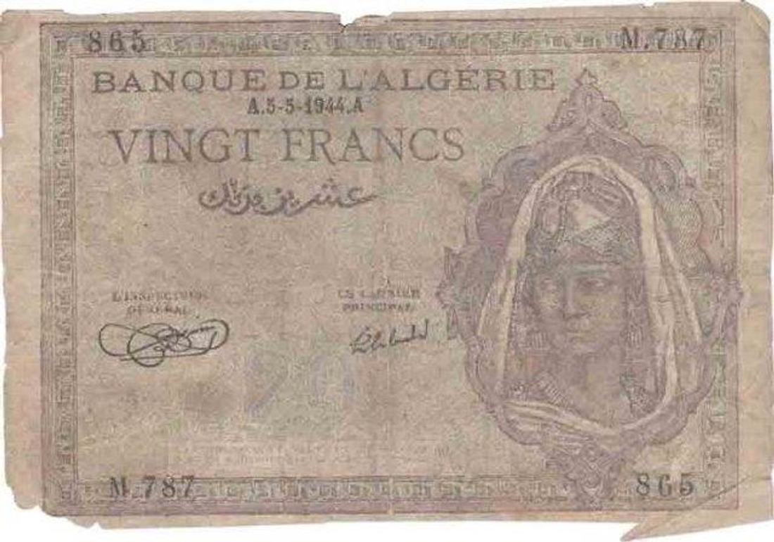 One Hundred Cent Francs Bank Note of Algeria of 1960.