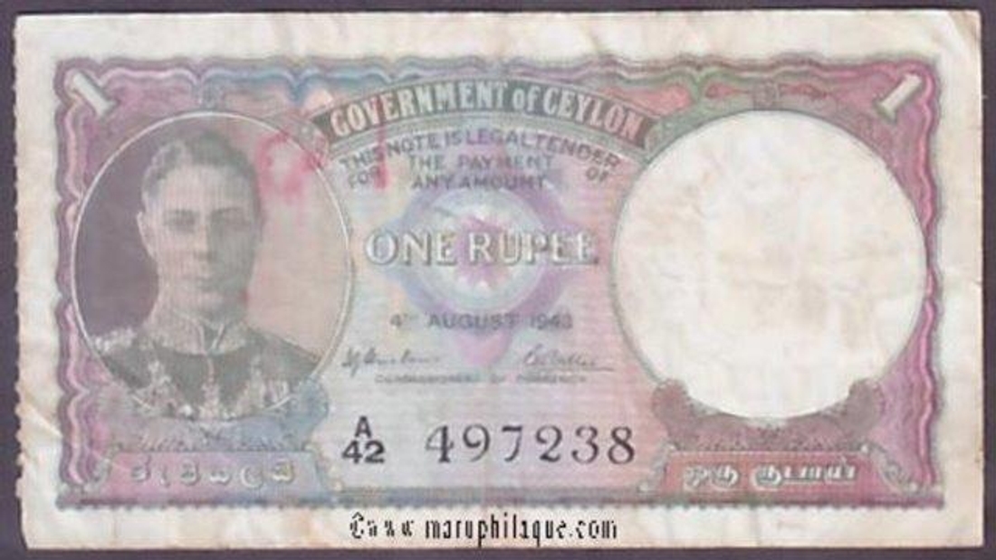 King George VI of Ceylon 1943 Two Rupees Banknote Signe ...