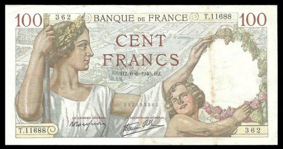 One Hundred Francs Bank Note of Algeria of 1945.
