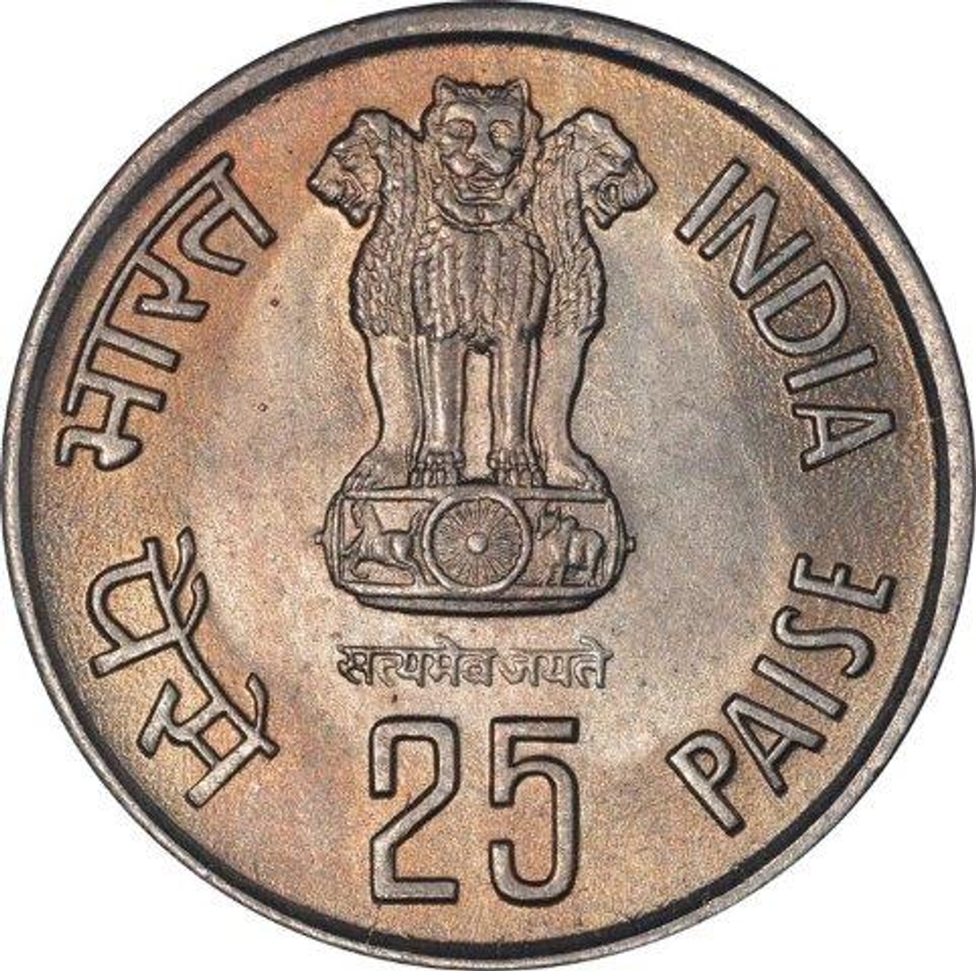 Cupro Nickel Twenty Five Paise Coin of Hyderabad Mint ...