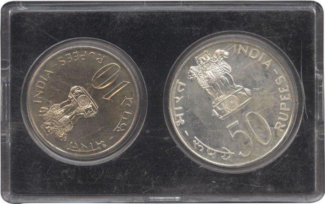 Silver Set of Two coins of Fifty and Ten Rupees of Bomb ...