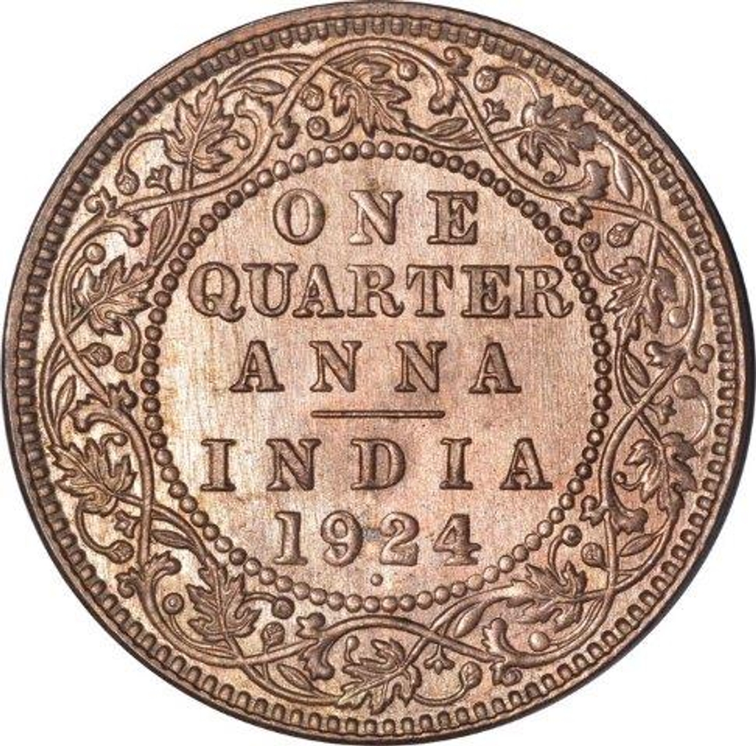 Bronze One Quarter Anna Coin of King George V of Bombay ...