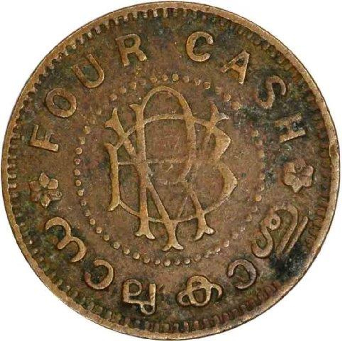 Bronze Four Cash Coin of Bala Rama Varma II of Travanco ...