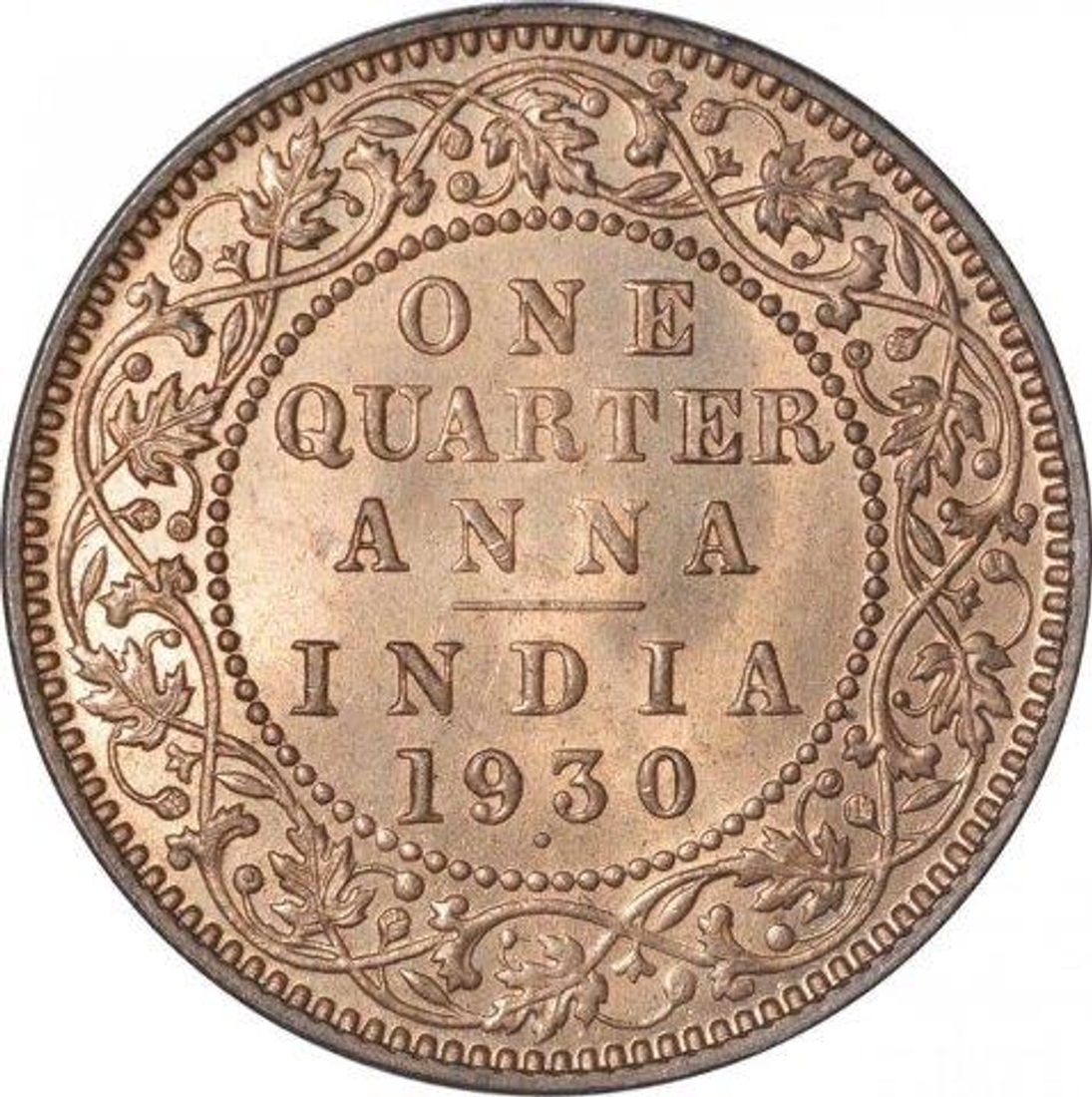 Copper One Quarter Anna Coin of King George V of Calcut ...