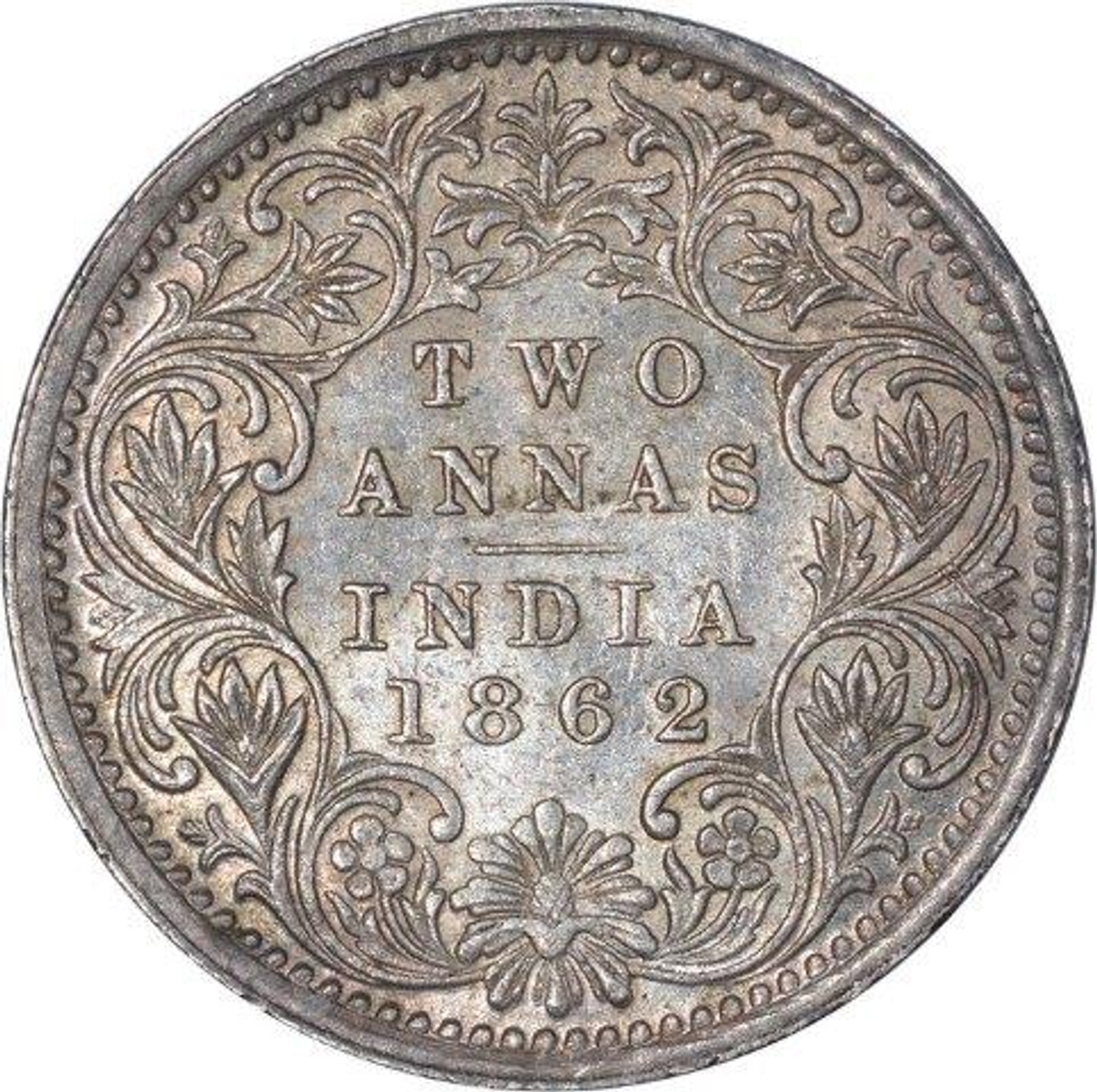 Silver Two Annas Coin of Victoria Queen of Bombay Mint ...