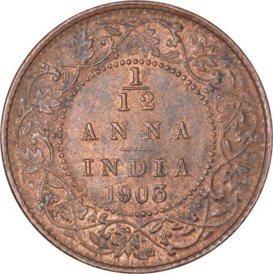 Copper One Twelfth Anna Coin of Victoria Queen of Madra ...