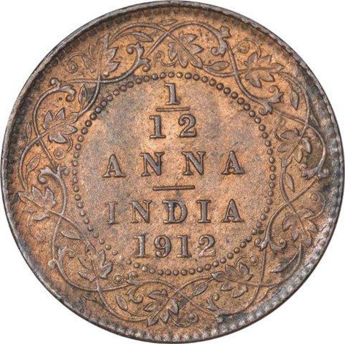 Bronze One Twelfth Anna Coin of King George V of Calcut ...
