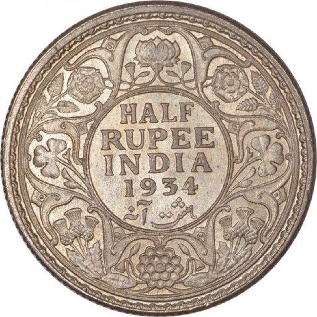 Silver Half Rupee Coin of King George V of Bombay Mint ...