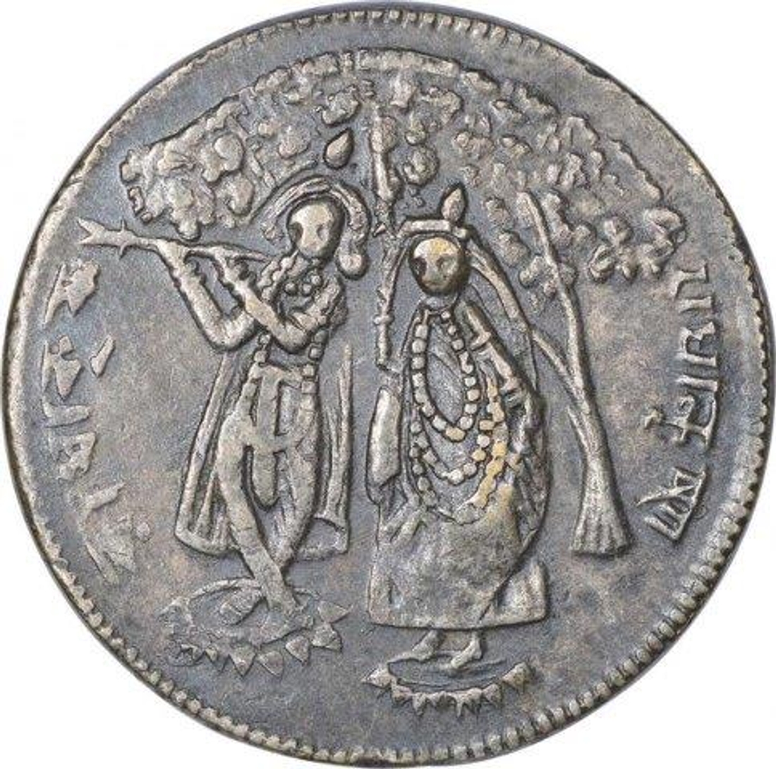 Copper Ramtanka Temple Coin of Nandi and Goddess Durga.