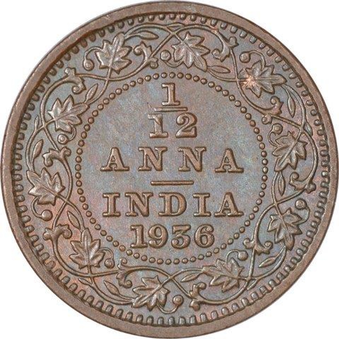 Bronze One Twelfth Anna Coin of King George V of Calcut ...