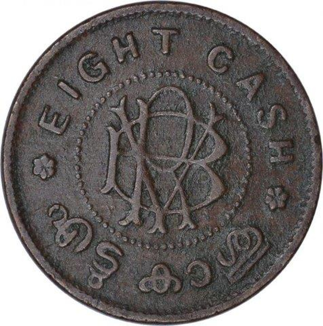 Copper Eight Cash Coin of Rama Varma VI of Travancore S ...