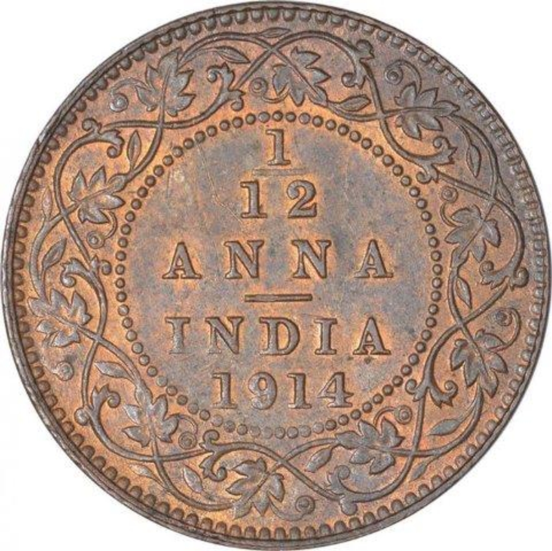 Bronze One Twelfth Anna Coin of King George V of Calcut ...
