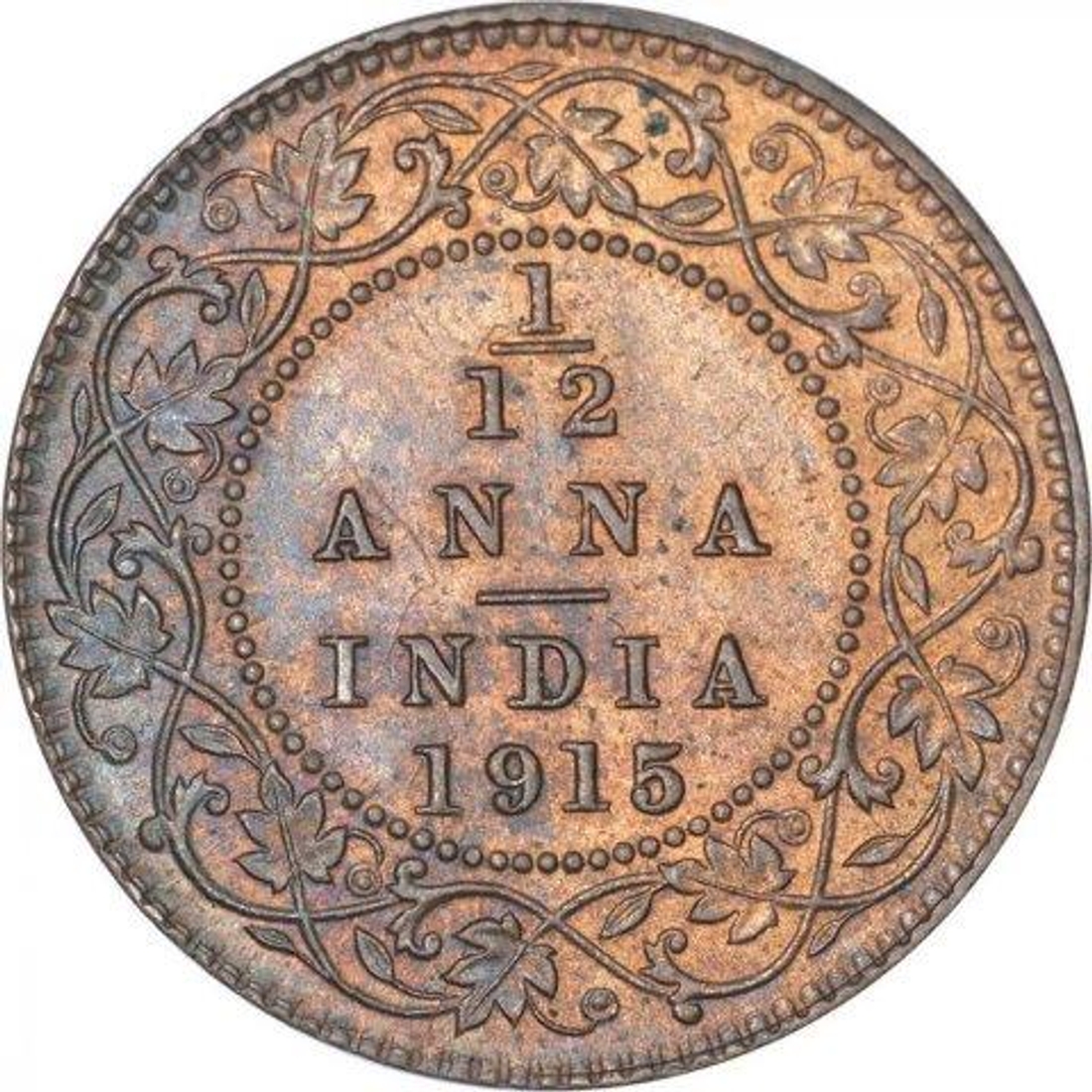 Copper One Twelfth Anna Coin of Victoria Empress of Bom ...