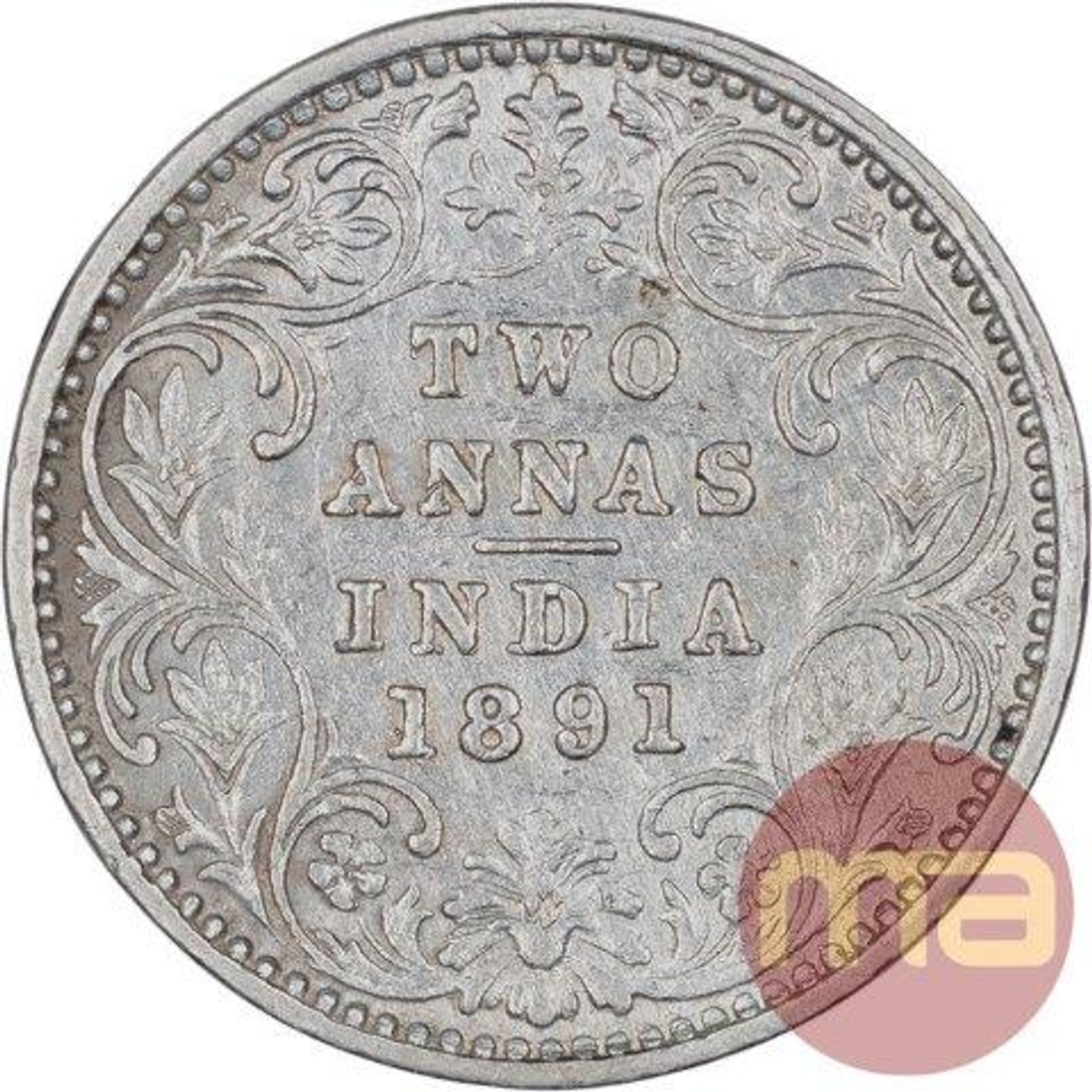 Silver Two Annas Coin of Victoria Queen of Bombay Mint ...