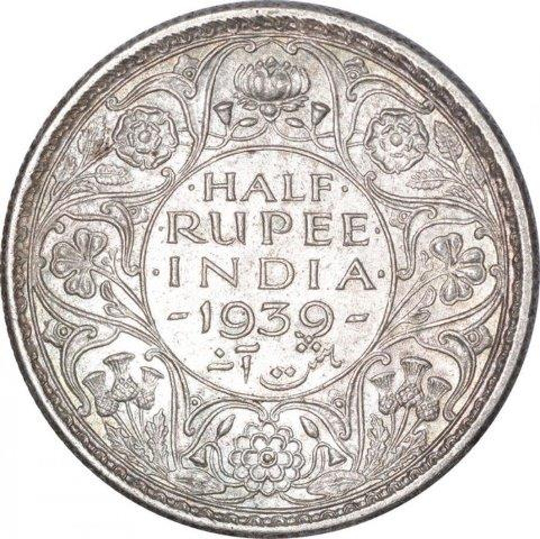 Silver Half Rupee Coin of King George V of Calcutta Min ...