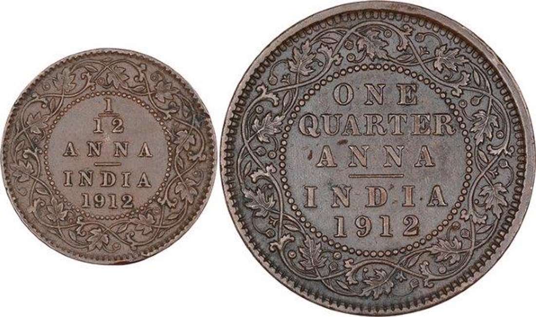 Bronze Quarter Anna Coin of King George V of Calcutta ...