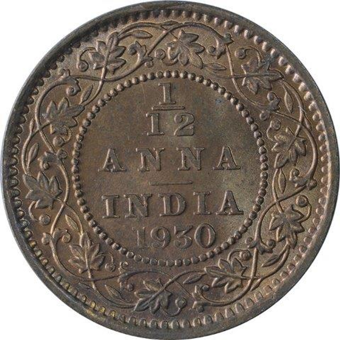 Copper One Twelfth Anna Coin of King George VI of Bomba ...