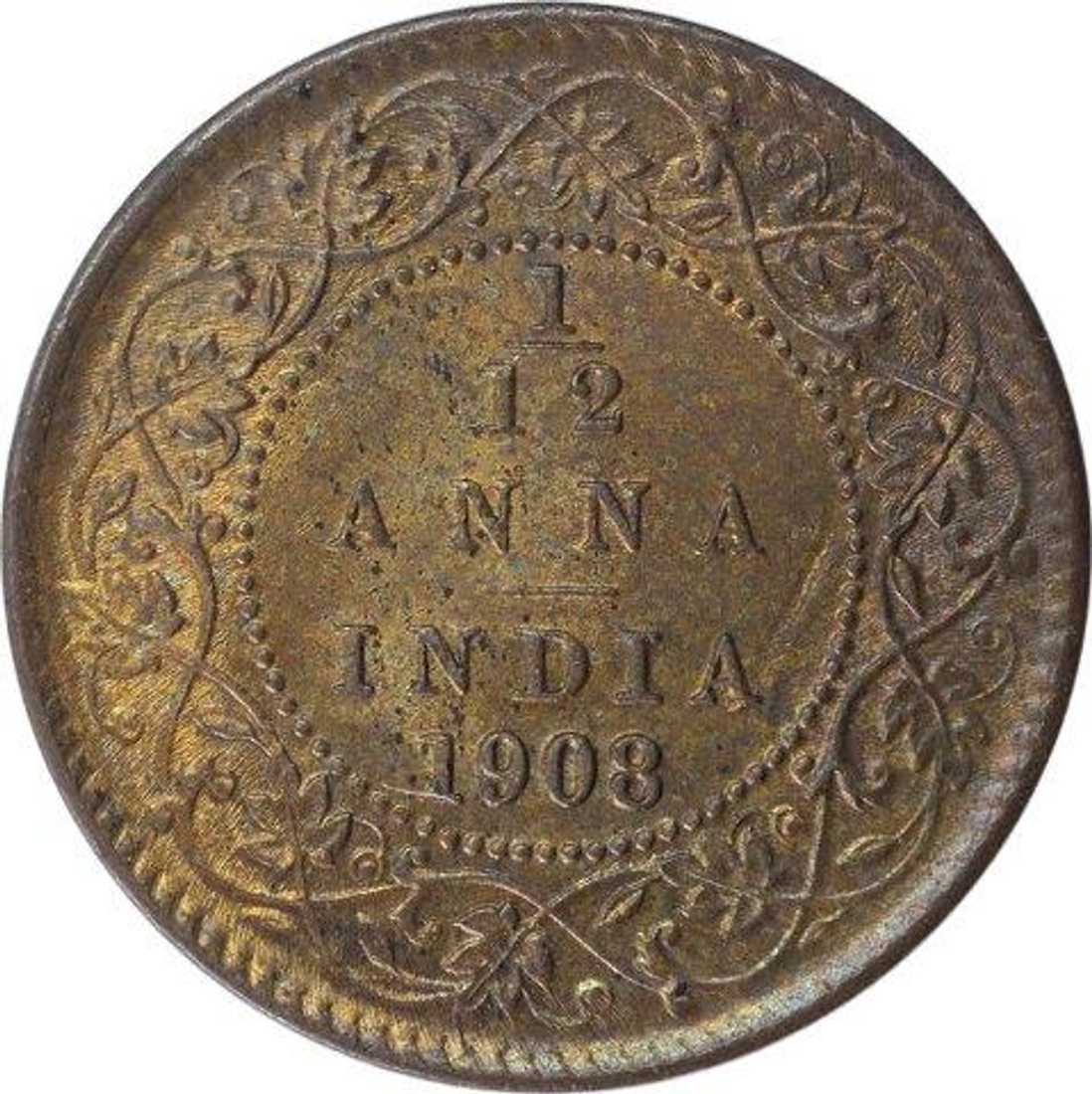 Copper One Twelfth Anna Coin of King Edward VII of Calc ...