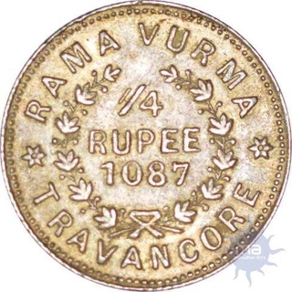 Copper One Chukram Coin of Rama Varma VI of Travancore ...