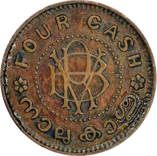 Copper Four Cash Coin of Rama Varm VI of Travancore State.