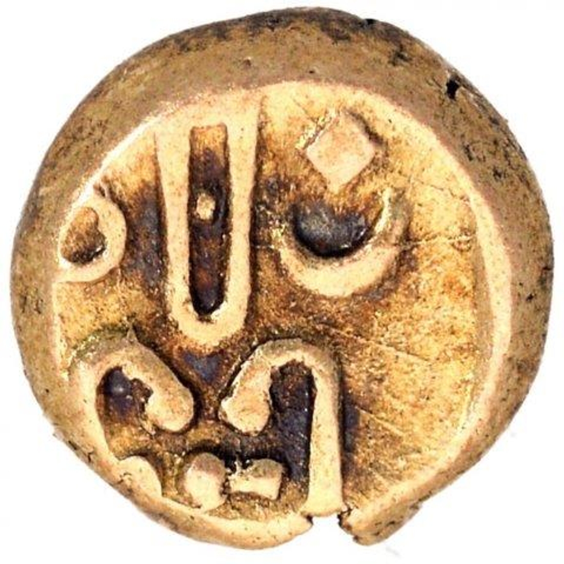 Degenerated Kali figure Gold fanam Coin of Indo-Dutch.