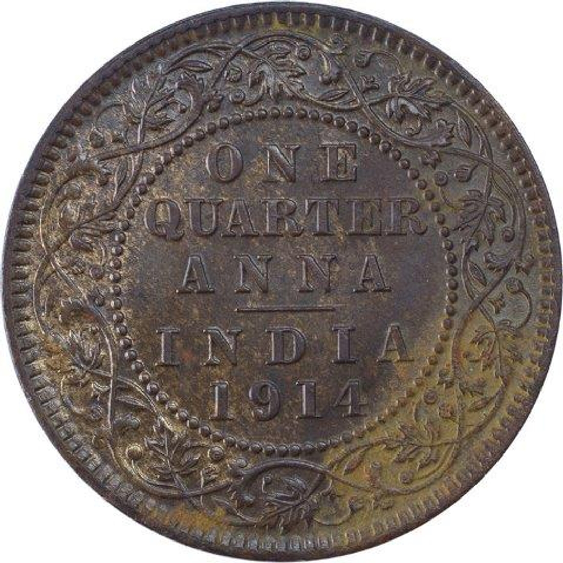 Copper Quarter Anna of King George V of Calcutta Mint o ...