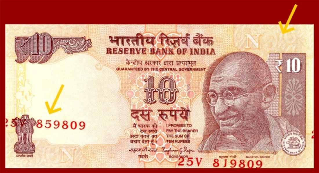 Error Ten Rupees Bank Note Signed By Raghuram G Rajan.