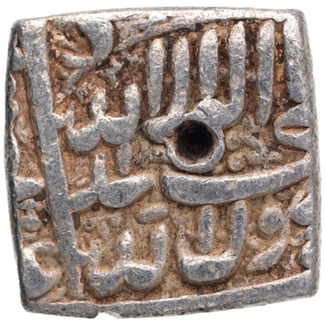 Silver Square One Rupee Coin of Akbar of Ahmadabad Mint.