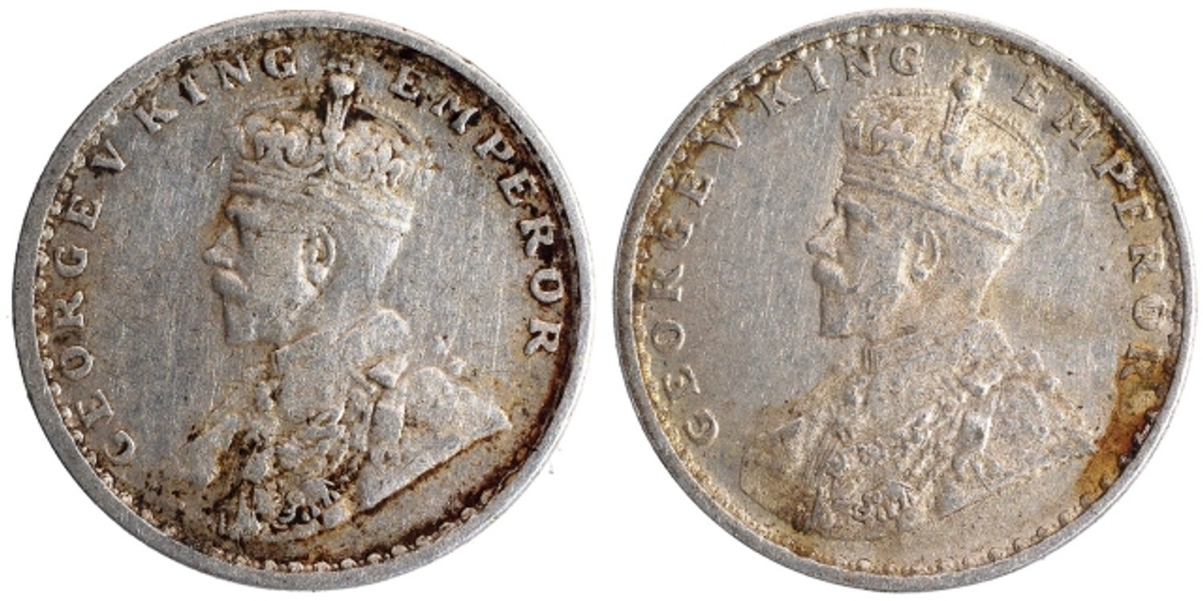 Silver Two Annas Coin of King George V of Calcutta Mint ...