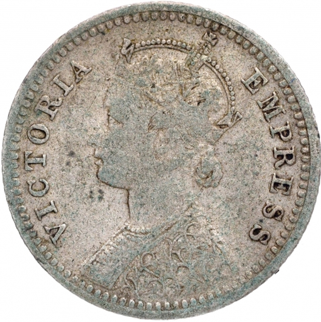 Silver Two Annas Coin of Victoria Empress of Bombay Min ...