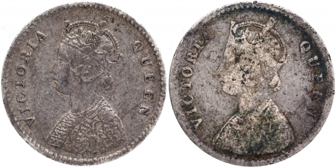 Silver Two Annas Coins of Victoria Empress of Bombay Mi ...