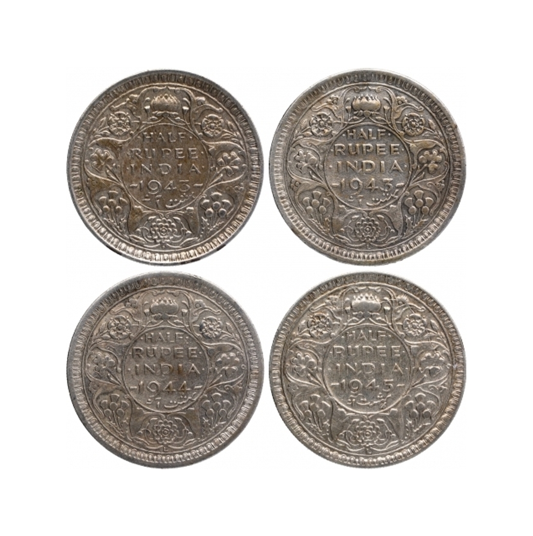 Silver Quarter Rupee Coins of King George V of Bombay Mint.