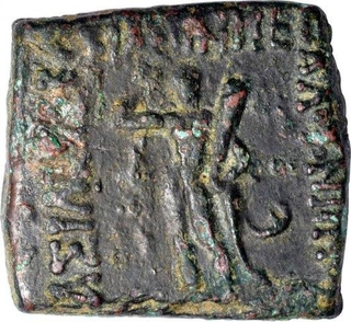 Square Copper Coin of Menander I of Indo Greeks.