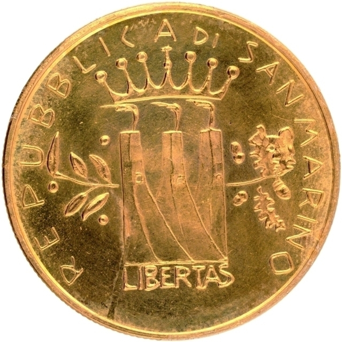 Gold Five Scudi Coin of Sanmarino of 1984.