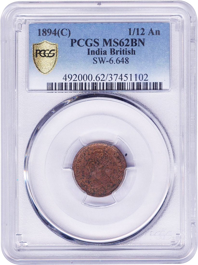 Uncirculated Copper One Twelfth Anna Coin of Victoria E ...