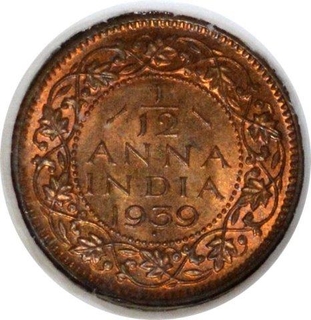 Bronze One Twelfth Anna Coin of King George V of Calcut ...