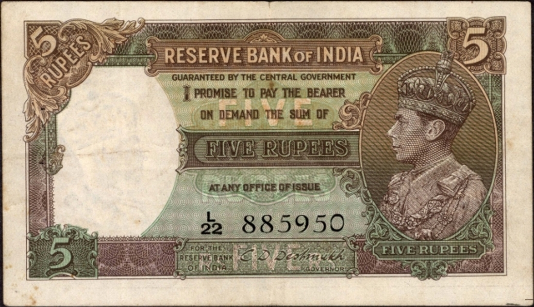 Five Rupees Note of King George VI Signed by C D Deshmu ...