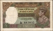 Five Rupees Bank Note of King George VI signed by C.D. ...