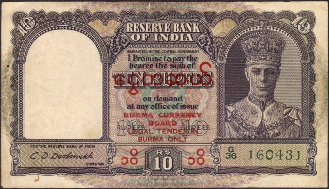 Ten Rupees Bank Note of King George VI Signed by C D De ...